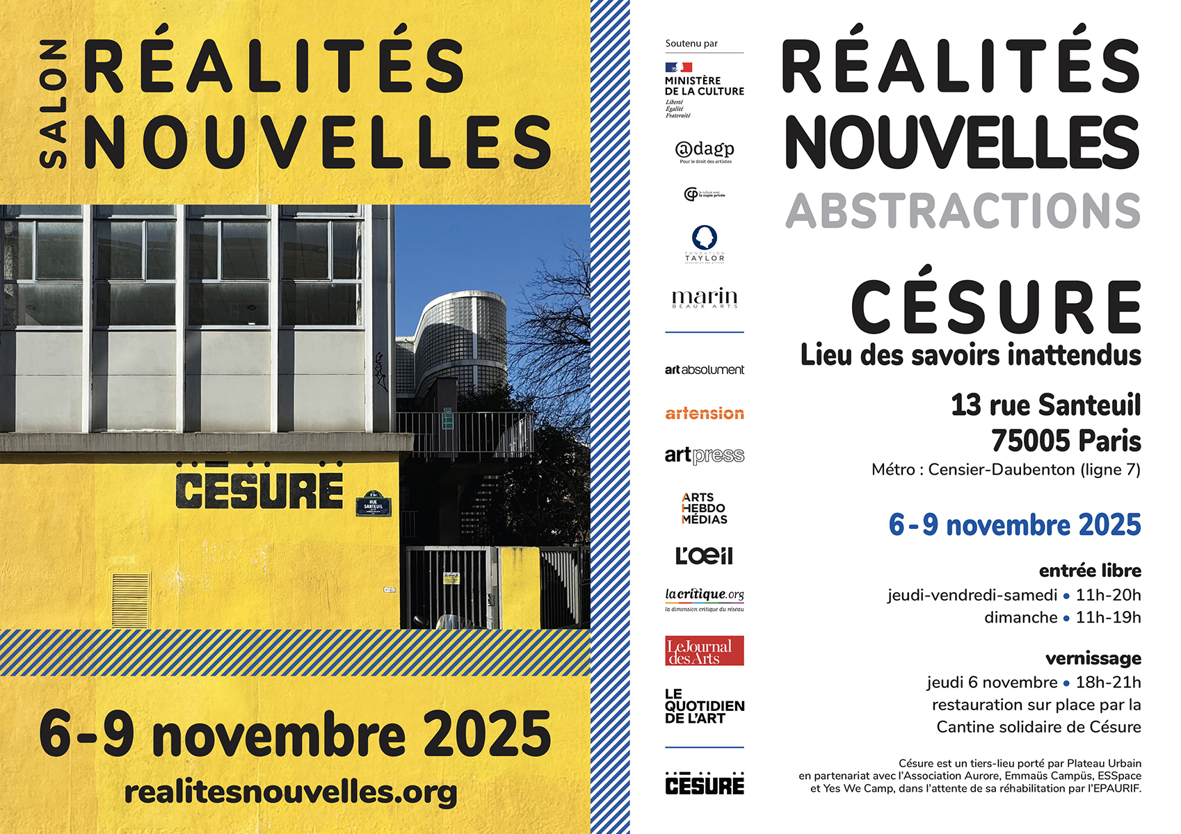 « CÉSURE - Lieu des savoirs inattendus », 13 rue Santeuil 75005 Paris ; un tiers lieu qui fait sens pour une association comme la nôtre où l'engagement d'un collectif construit du commun au service des artistes.